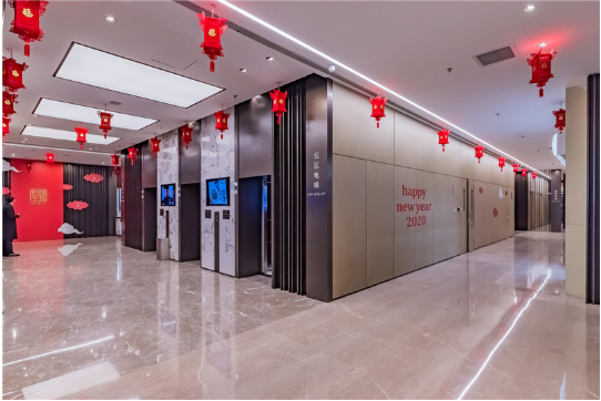 设计规格:楼高99.95米,采用框架结构,外覆蓝色方形玻璃幕墙,现代简约风格;大堂挑高11.5米,配备12部国际品牌电梯,标准层面积约2166平方米,层高3.5米,净高2.7米,空间灵活可组合。