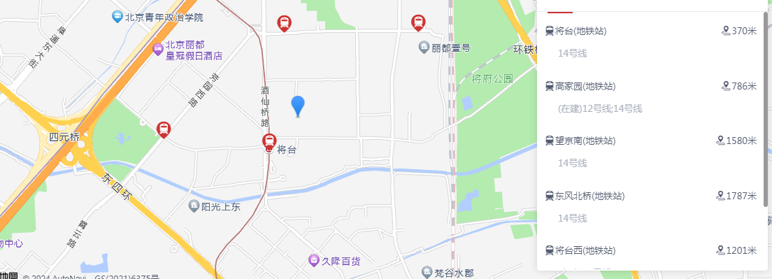 交通地铁:距离地铁14号线将台距离出口342米