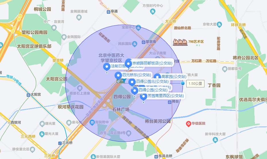 大银行(望京支行)1.2公里、中国银行(将台路支行)1.2公里。